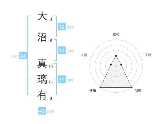 大沼 真璃有さんを姓名の画数から五運を鑑定