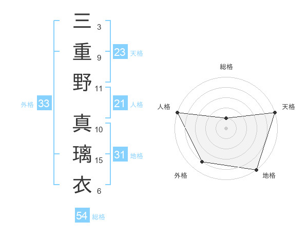 三重野 真璃衣さんの外格は33画の4点!