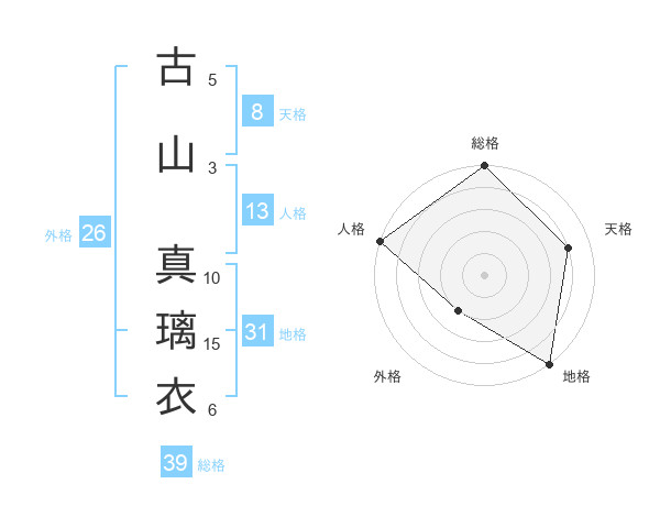 古山 真璃衣さんを姓名の画数から五運を鑑定