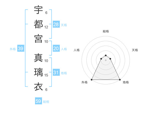 宇都宮 真璃衣さんの総格は59画の1点!