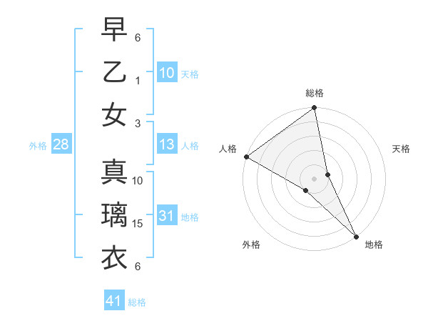 早乙女 真璃衣さんを姓名の画数から五運を鑑定
