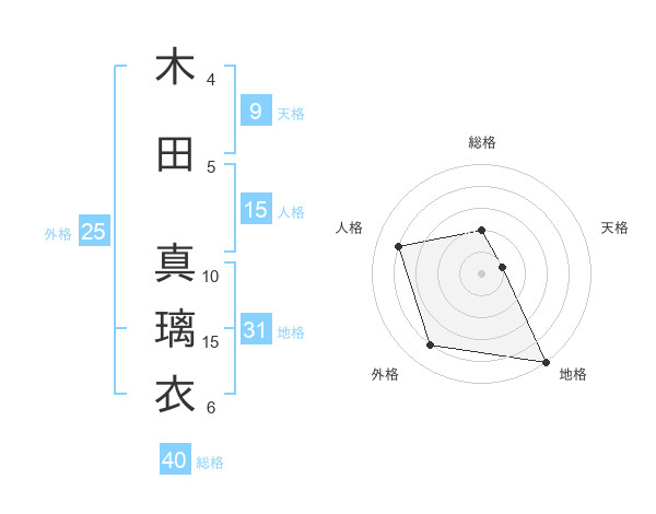 木田 真璃衣さんを姓名の画数から五運を鑑定