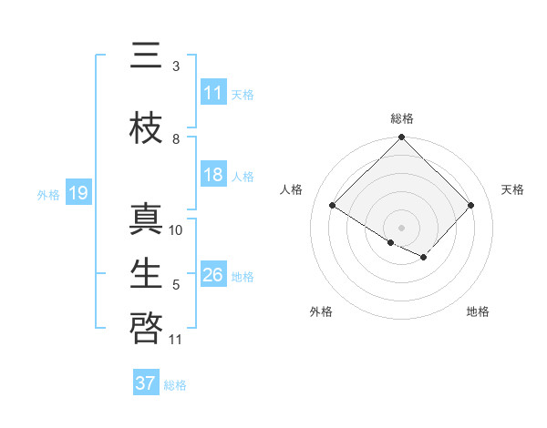 三枝 真生啓さんの総格は37画の5点!