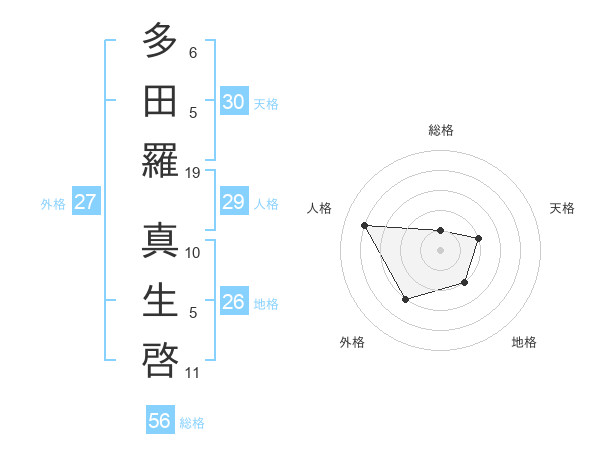 多田羅 真生啓さんを姓名の画数から五運を鑑定