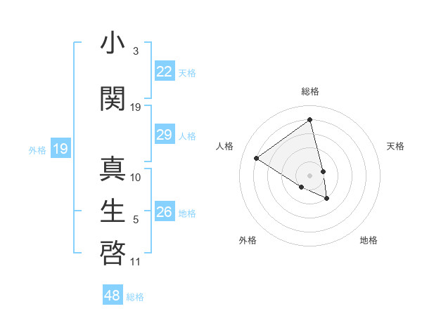 小関 真生啓さんを姓名の画数から五運を鑑定