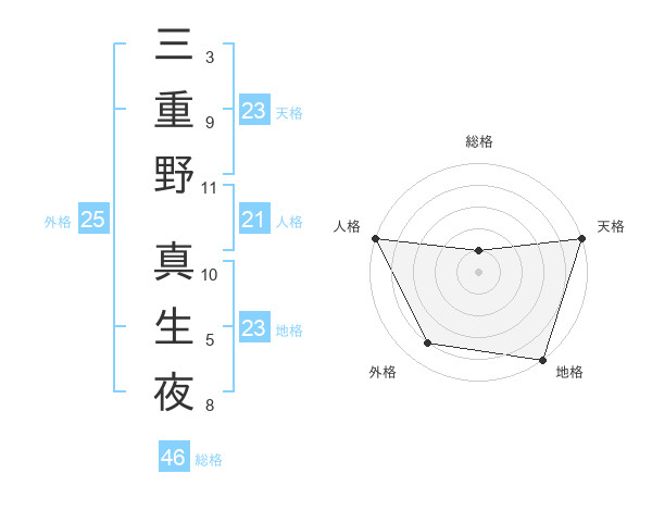 三重野 真生夜さんを姓名の画数から五運を鑑定