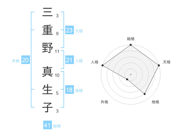 三重野 真生子さんを姓名の画数から五運を鑑定