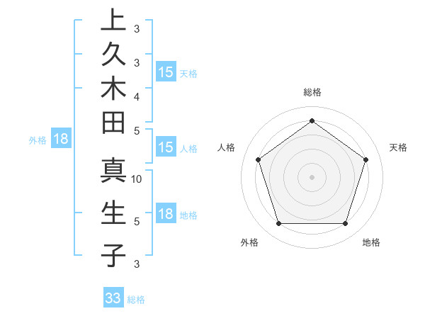 上久木田 真生子さんを姓名の画数から五運を鑑定