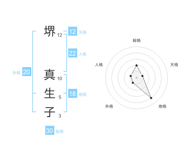 堺 真生子さんの総格は30画の2点!