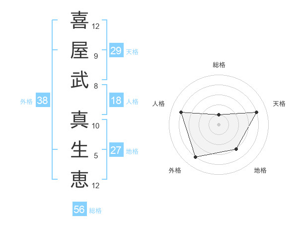 喜屋武 真生恵さんの外格は38画の4点!