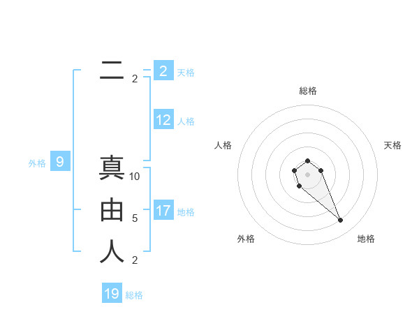二 真由人さんの地格は17画の4点!