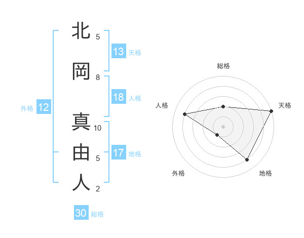 北岡 真由人さんを姓名の画数から五運を鑑定
