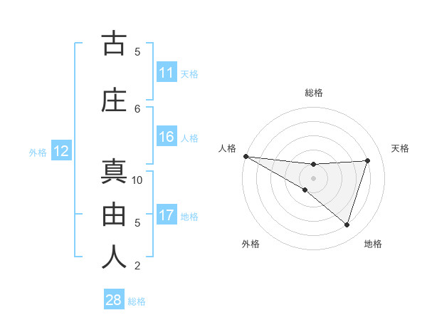 古庄 真由人さんを姓名の画数から五運を鑑定