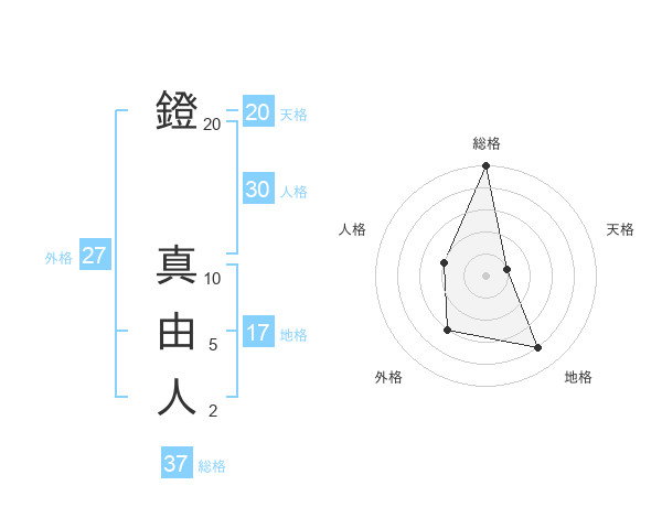 鐙 真由人さんを姓名の画数から五運を鑑定