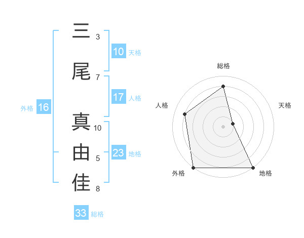 三尾 真由佳さんを姓名の画数から五運を鑑定