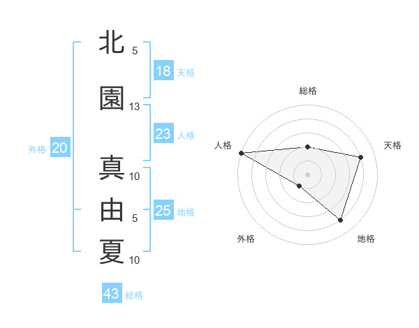 北園 真由夏さんを姓名の画数から五運を鑑定