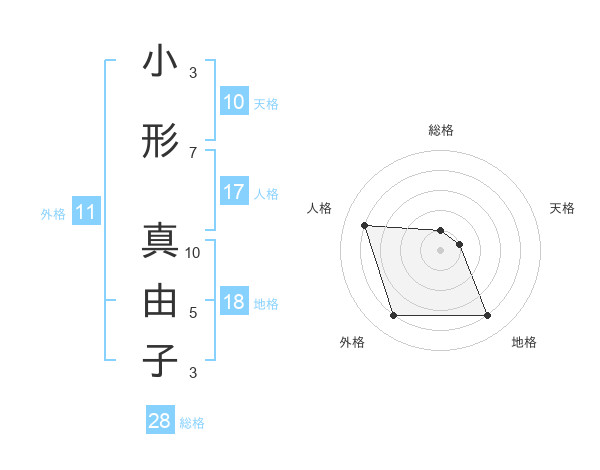 小形 真由子さんの外格は11画の4点!