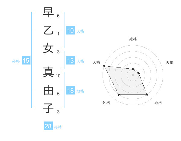 早乙女 真由子さんを姓名の画数から五運を鑑定
