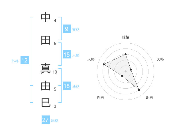 中田 真由巳さんを姓名の画数から五運を鑑定