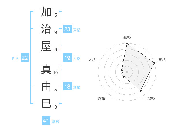 加治屋 真由巳さんの総格は41画の5点!