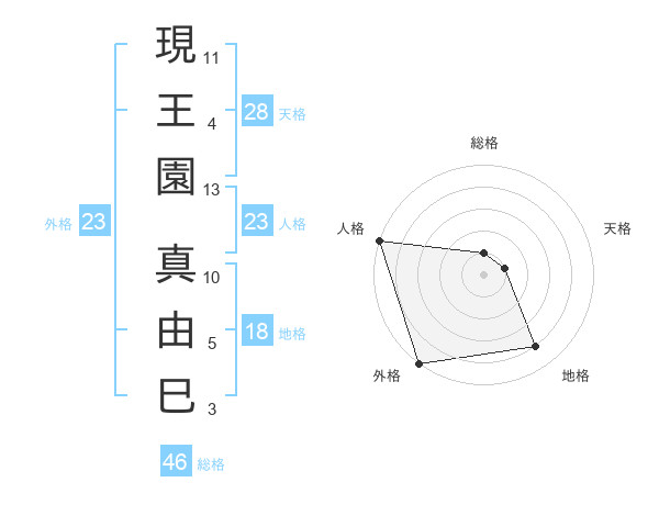現王園 真由巳さんを姓名の画数から五運を鑑定