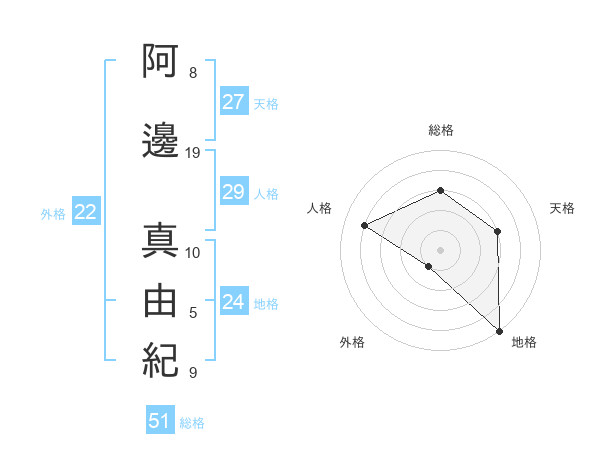 阿邊 真由紀さんの総格は51画の3点!