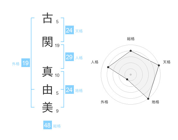 古関 真由美さんの天格は24画の5点!