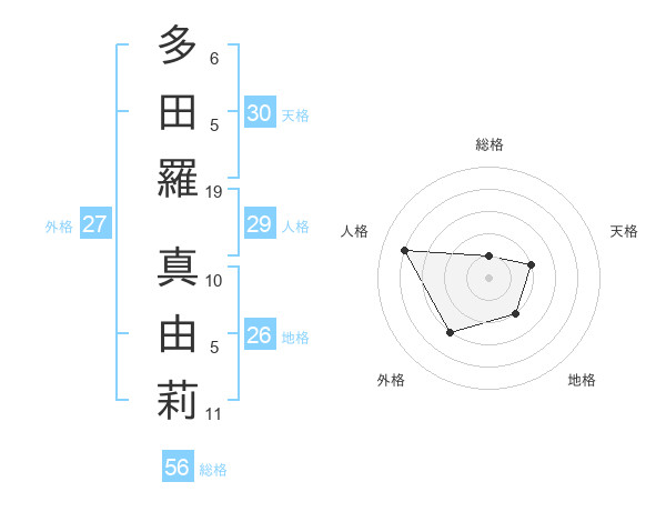 多田羅 真由莉さんの総格は56画の1点!