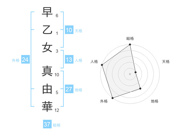 早乙女 真由華さんを姓名の画数から五運を鑑定
