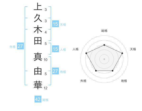 上久木田 真由華さんを姓名の画数から五運を鑑定