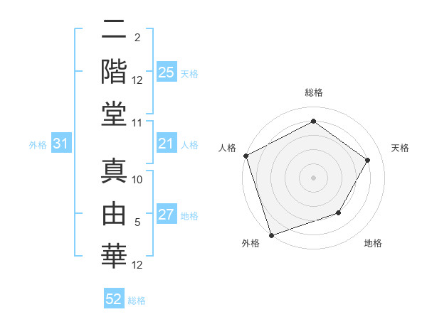 二階堂 真由華さんを姓名の画数から五運を鑑定