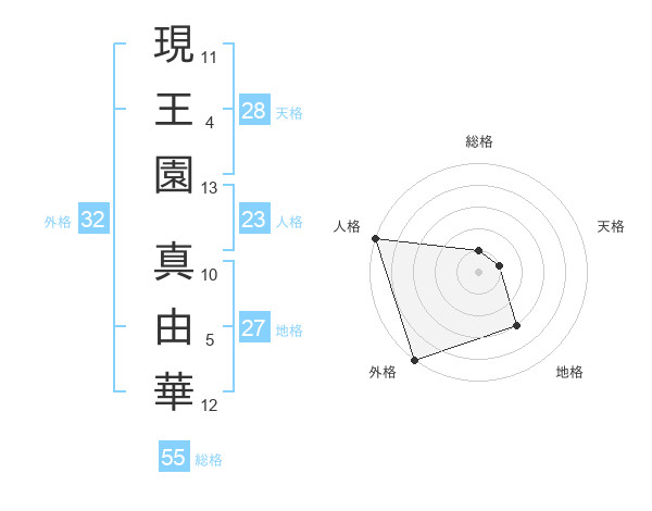 現王園 真由華さんを姓名の画数から五運を鑑定