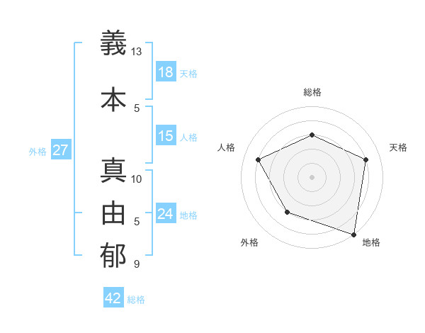 義本 真由郁さんの天格は18画の4点!