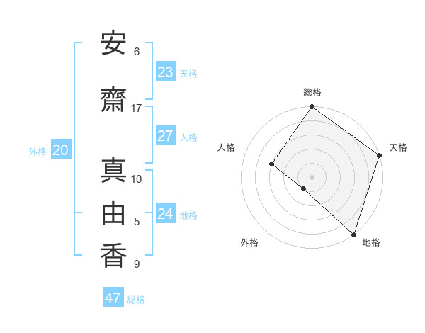安齋 真由香さんを姓名の画数から五運を鑑定