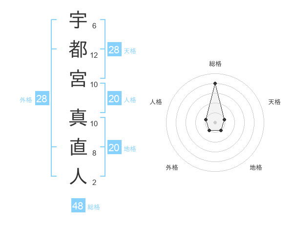宇都宮 真直人さんの総格は48画の4点!