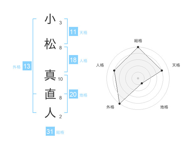 小松 真直人さんの外格は13画の5点!