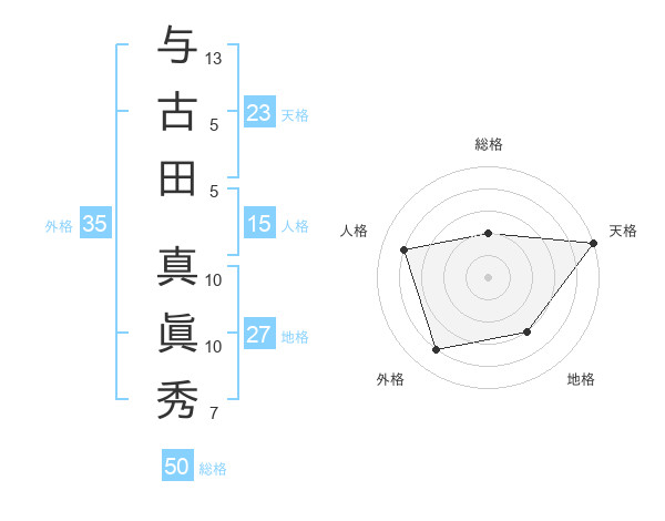 与古田 真眞秀さんを姓名の画数から五運を鑑定