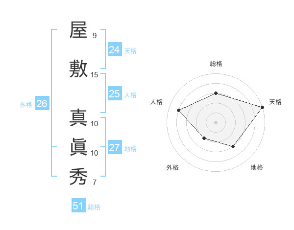 屋敷 真眞秀さんを姓名の画数から五運を鑑定