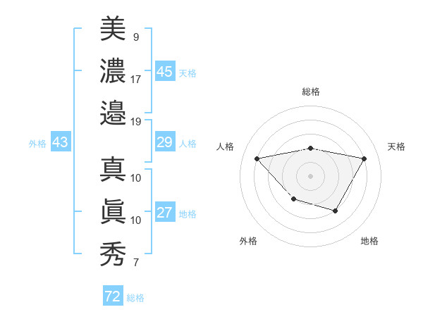 美濃邉 真眞秀さんを姓名の画数から五運を鑑定