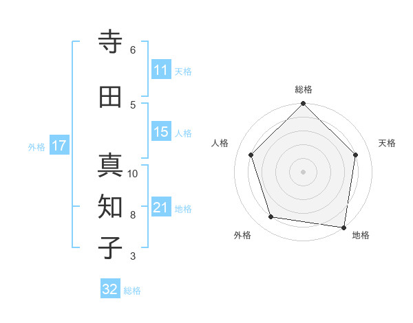 寺田 真知子さんを姓名の画数から五運を鑑定