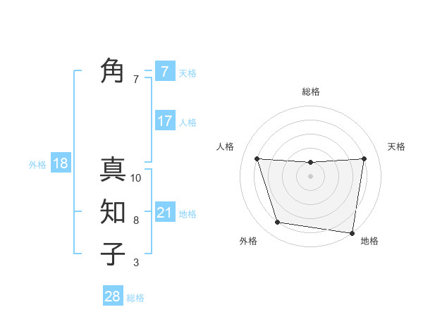 角 真知子さんの天格は7画の4点!
