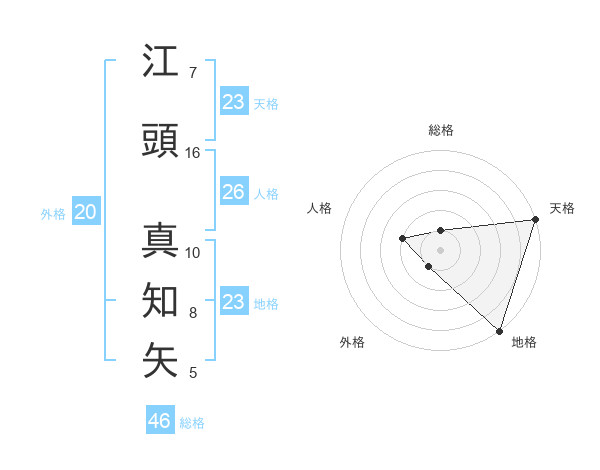 江頭 真知矢さんの天格は23画の5点