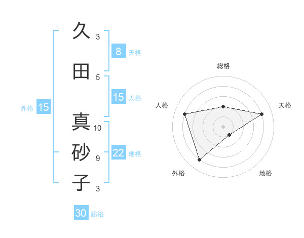 久田 真砂子さんを姓名の画数から五運を鑑定