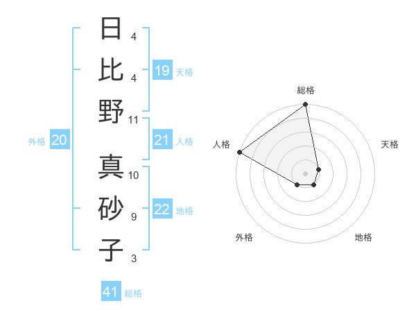 日比野 真砂子さんの総格は41画の5点!