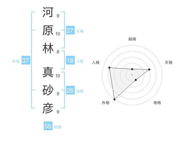 河原林 真砂彦さんを姓名の画数から五運を鑑定