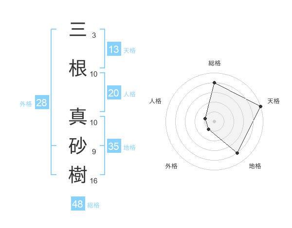 三根 真砂樹さんの天格は13画の5点!