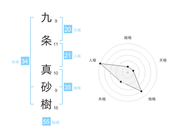 九条 真砂樹さんを姓名の画数から五運を鑑定