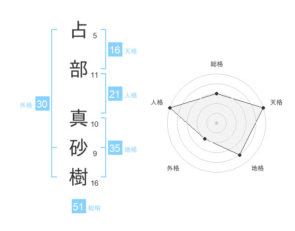 占部 真砂樹さんを姓名の画数から五運を鑑定