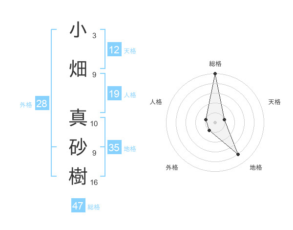 小畑 真砂樹さんを姓名の画数から五運を鑑定