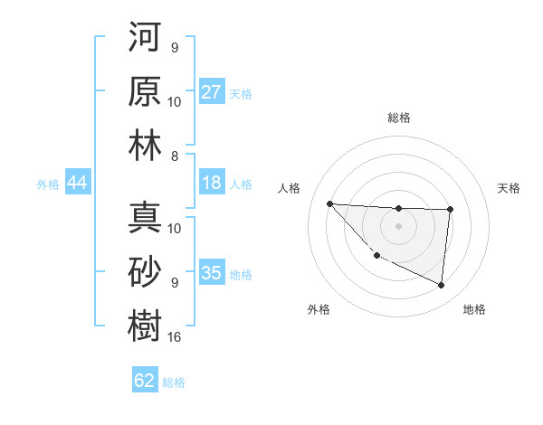河原林 真砂樹さんを姓名の画数から五運を鑑定